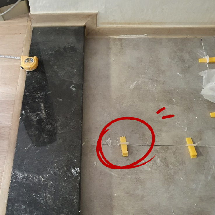 타일을 시공할 때는 수평을 맞추기위해서 그라인더로 갈거나 고무망치로 두드리면서 시공하고,